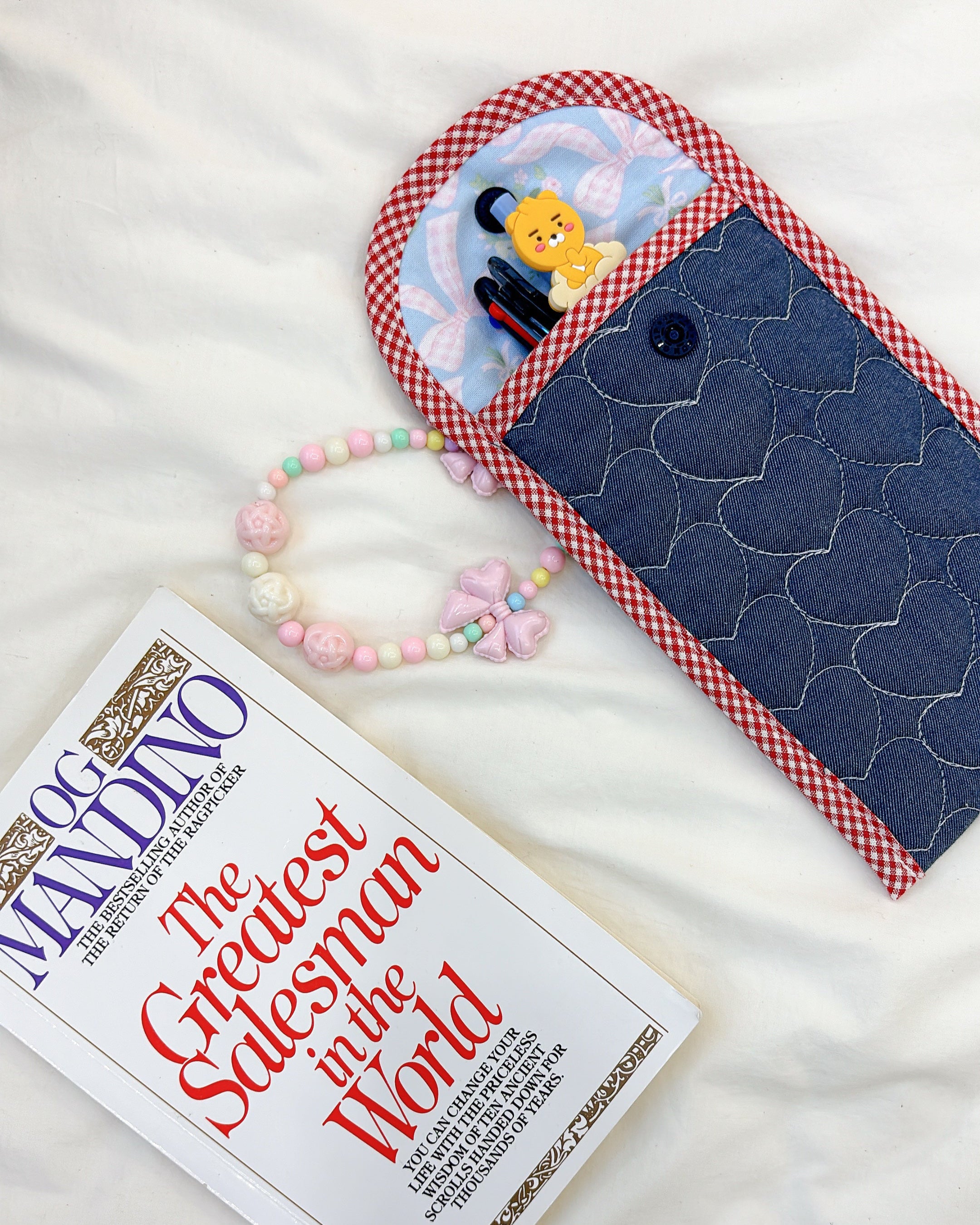 New Jeans Pen Pouch / Quilted Y2K Heart Denim Case